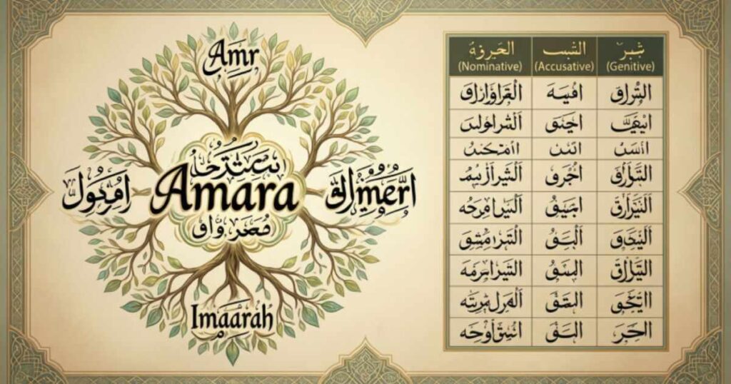 The Arabic word Amara springs from one of the language’s most powerful root systems: أ-م-ر (A-M-R). This trilateral root system forms the backbone of Arabic morphology, and understanding it helps you unlock dozens of related terms. At its core, this Arabic root A-M-R carries meanings tied to command, signal, and order concepts that naturally connect to signs and indications.