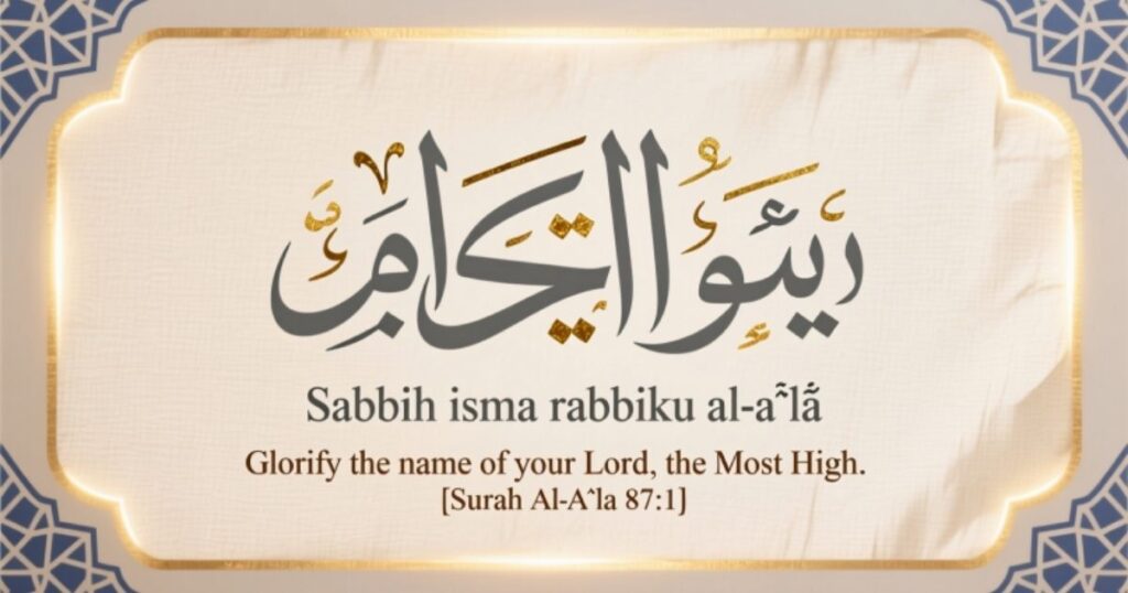 Translation: Glorify the name of your Lord, the Most High. (Surah Al-A‘la 87:1)