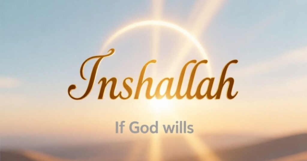 Inshallah means “if God wills” in Arabic. It shows hope and dependence on God for the future.